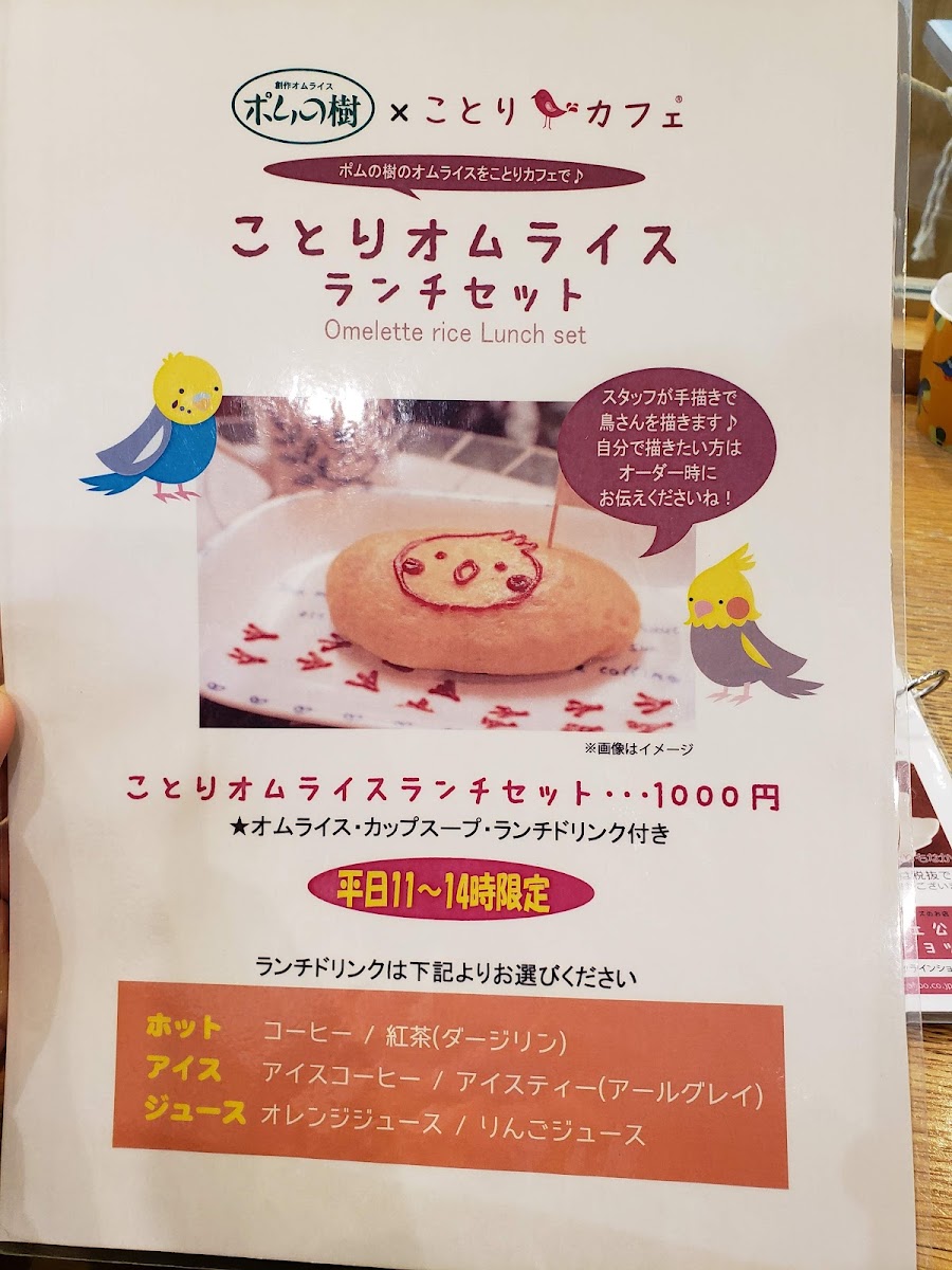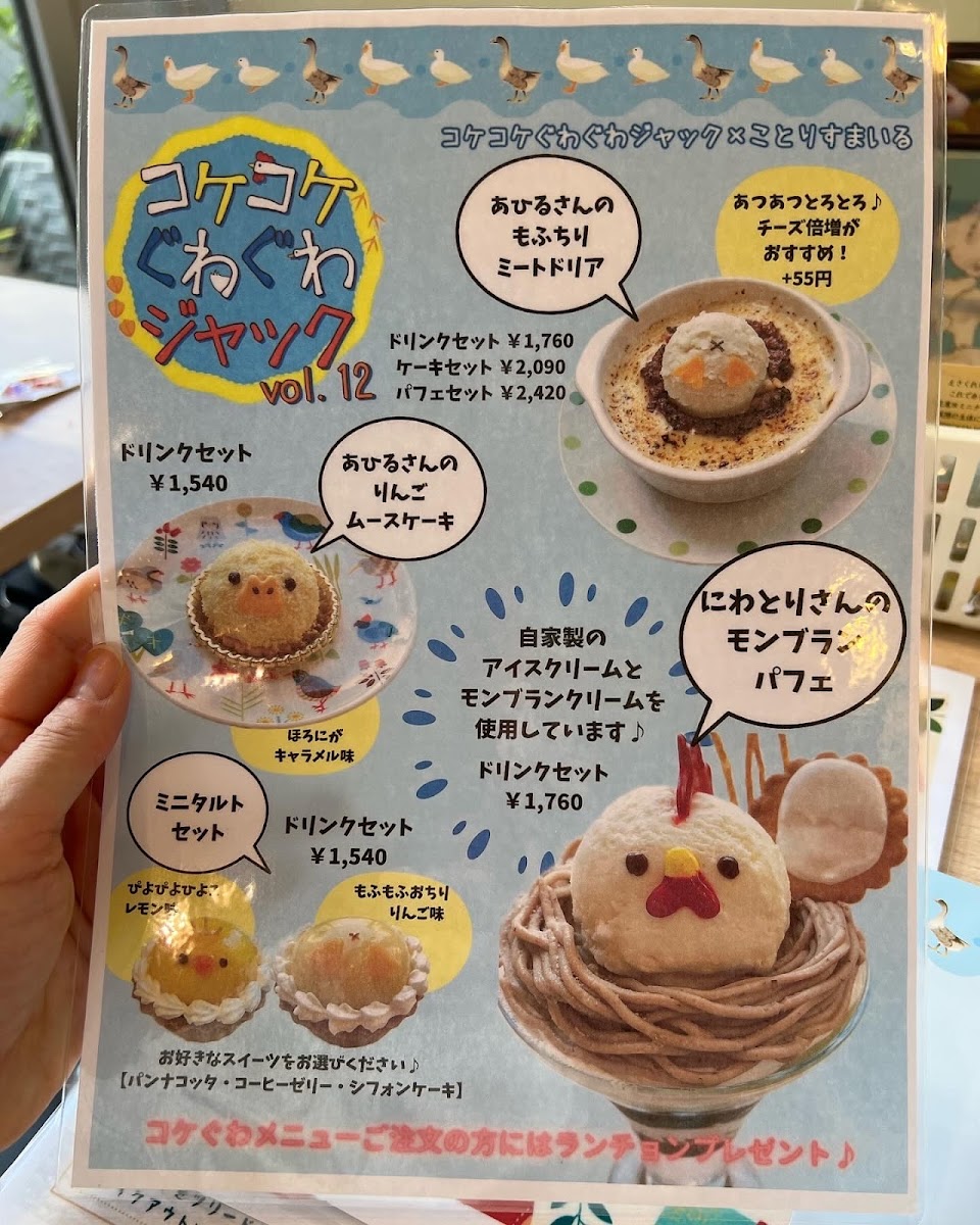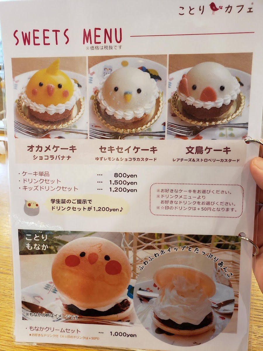 Kotori Smile offers a delightful selection of drinks and experiences that truly capture the essence of joy and warmth. For a sweet treat, the ショコラショー (Chocolat Show) is a must-try, offering a rich, indulgent chocolate experience. If you're in the mood for something unique and festive, the HappyValentine drink brings a fun, seasonal twist, perfect for special occasions. For those looking for a bit of interactive fun, the ふれあい体験/1回15分 (Fureai Taiken - 15-minute experience) provides an engaging and memorable hands-on activity, allowing guests to enjoy a brief yet enriching experience. Whether you're sipping on a decadent chocolate drink or participating in a short, enjoyable activity, Kotori Smile’s menu ensures a blend of indulgence and engagement, making it a perfect spot for both relaxation and light-hearted entertainment.
