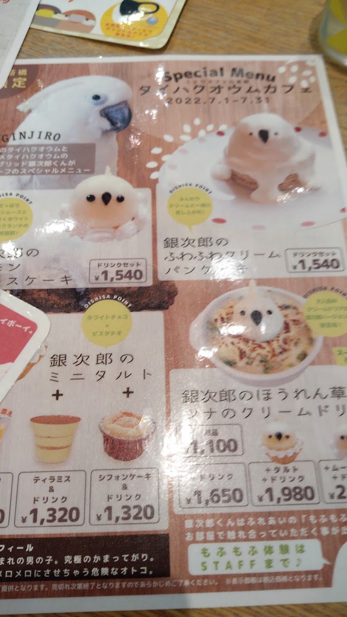 営業日の11:00~18:45迄受付※変更の場合あり 毎週平日木曜日はもふ曜日♪ オプションのおやつ体験が人数分無料イベント実施中です。 ことりスタッフの体調管理を優先で運営しておりますので、鳥さんの体調や機嫌、休憩・検診等でお目当ての鳥さんと触れあえない場合もございます。予めご了承ください。 カフェご利用のお客様に限ります。ふれあい体験のみのご利用は出来ません。未就学児のご利用及び、ふれあいルームへのご入室は出来ません。店頭で事前にもふもふ体験についてルールのご説明を実施しております。同意出来ないお客様はお断りする場合がございます。